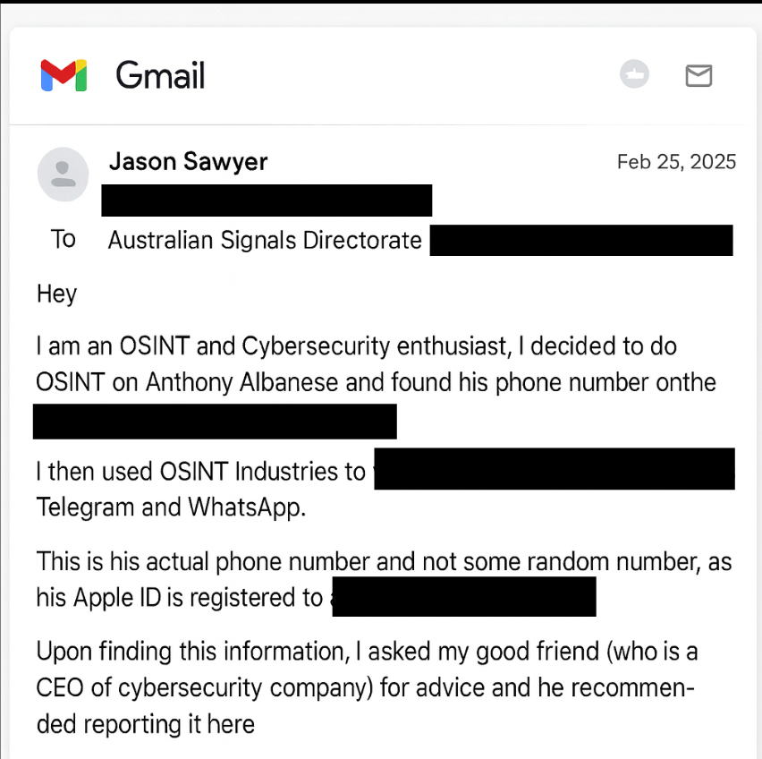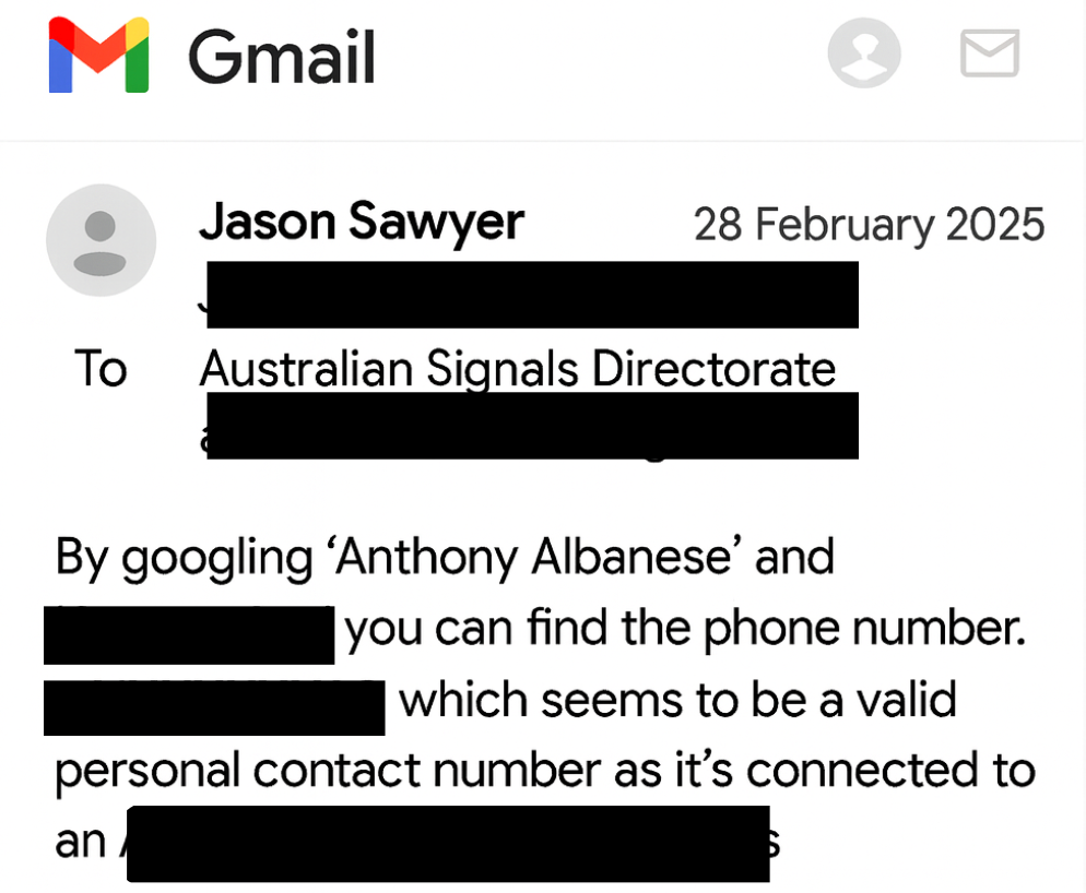 Jason Sawyer, a 23-year-old self-described “ethical hacker and cyber security researcher”, says he contacted the Australian Signals Directorate (ASD) on February 28, 2025, to alert them that the Prime Minister’s personal number had been published on a US-based website.
