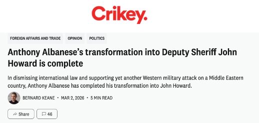 In dismissing international law and supporting yet another Western military attack on a Middle Eastern country, Anthony Albanese has completed his transformation into John Howard.