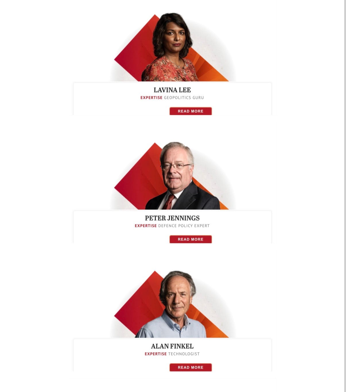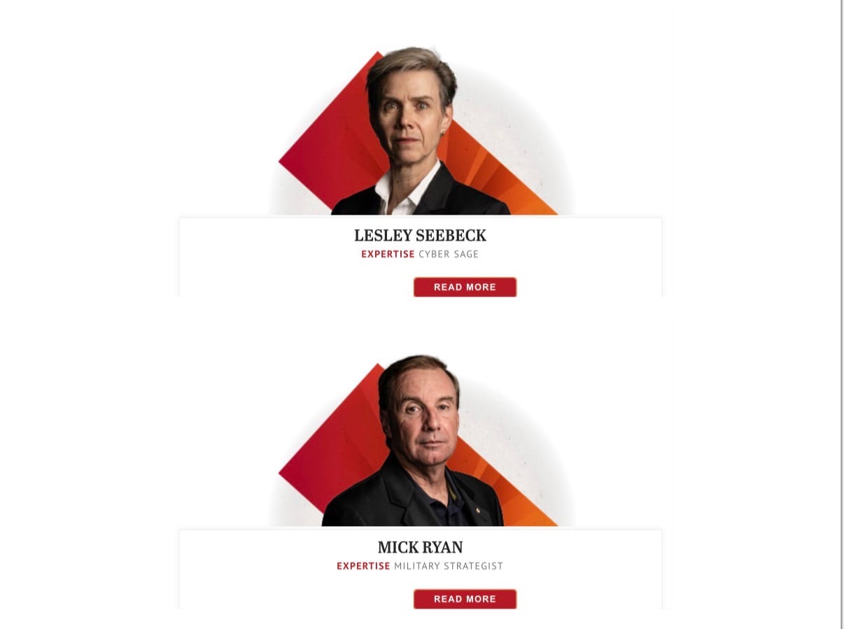 The experts featured in Nine's Red Alert series. Interesting that the male security experts have titles like "strategist" and "technologist", while the women are "guru" and "sage"...